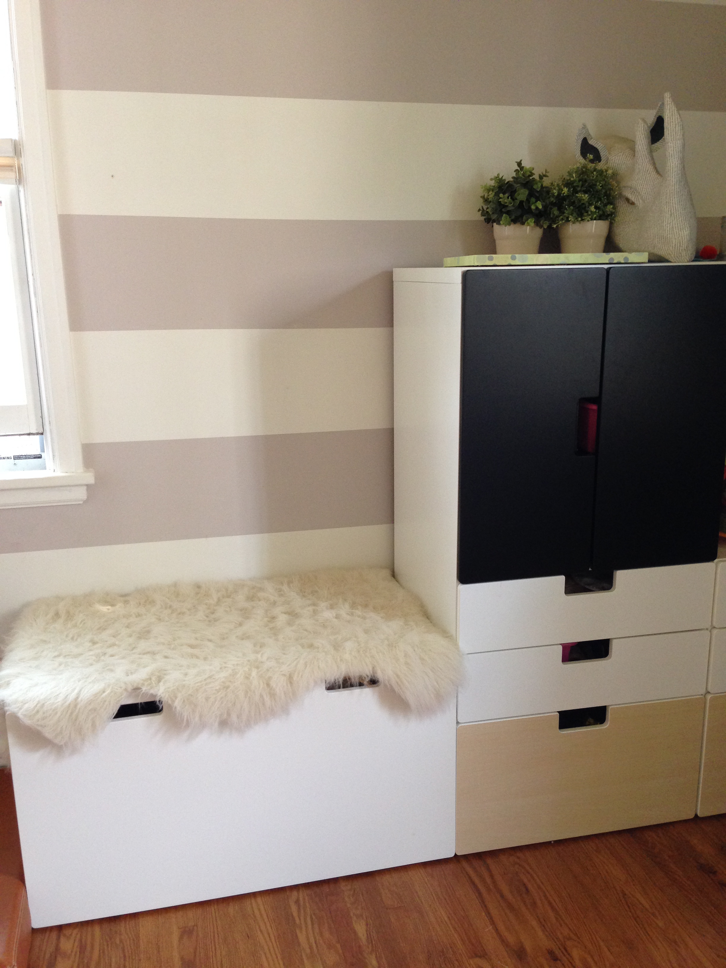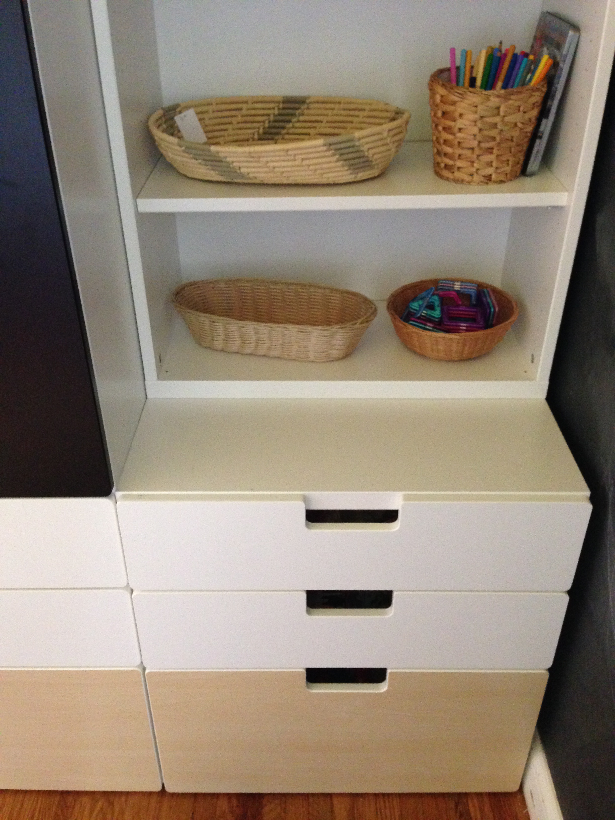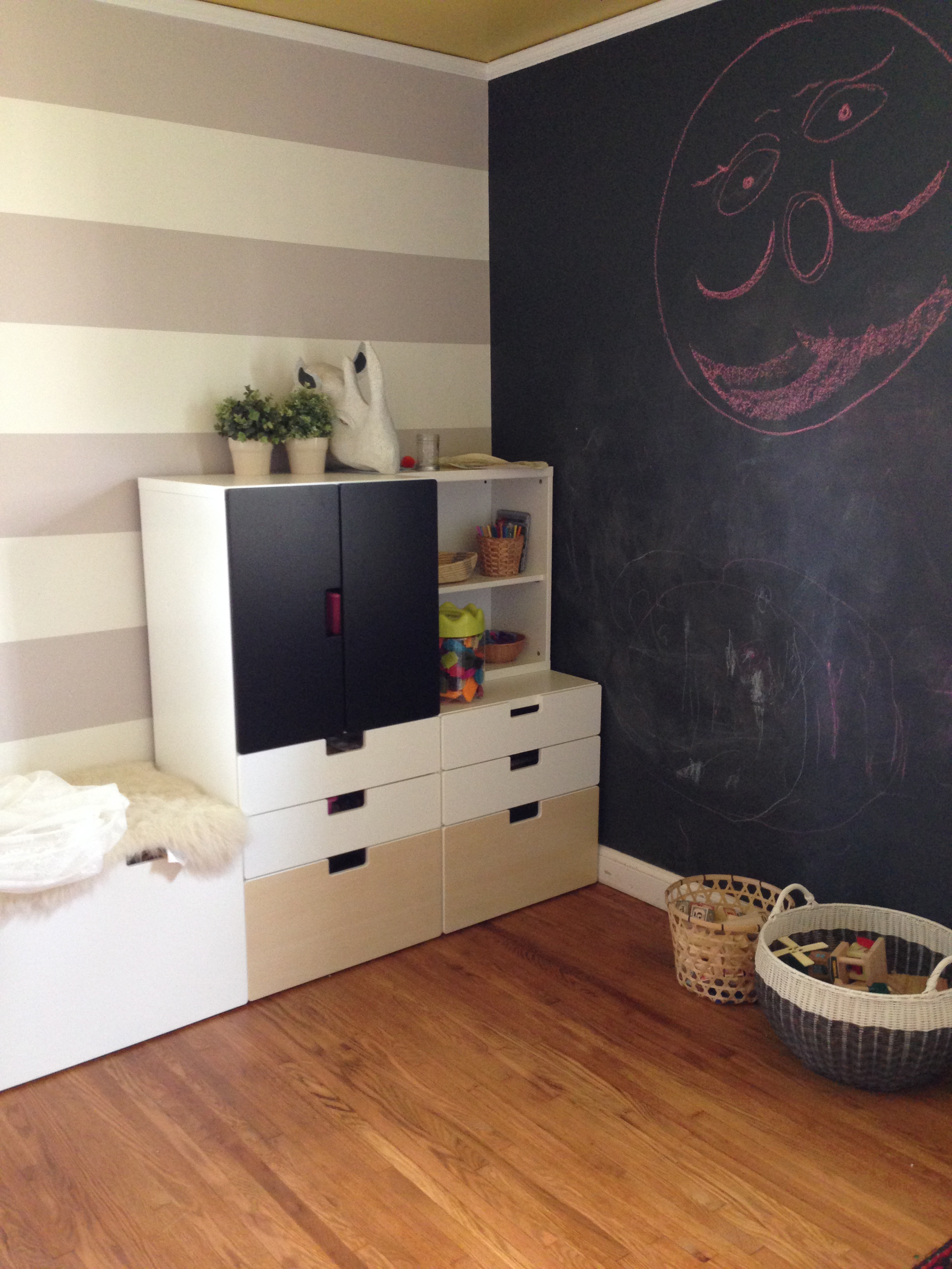Since the last post I’ve made some headway in terms of getting the two playrooms in order. I’ve also realized that the idea of more than one play area in a house with two children is not that absurd. In fact many friends have told me,( and I’ve seen for myself) that their entire homes have become over taken with kid gadgets, toys and gear. One friend even commented that his boys have “destroyed everything that was once nice in their home”. Yikes.