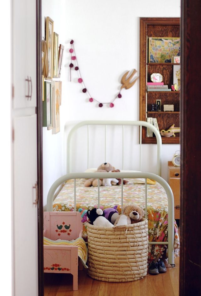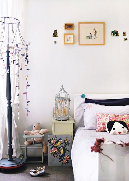 After gathering a virtual look book of rooms that I love, I analyze the photos for the specific element(s) that I was drawn to. I often love an assortment of ideas, schemes, colors etc. but combining all of them without editing is a recipe for an overwhelming mess. After noting each visual element I get to work figuring out a way to translate them for a particular project. Here are a selection of pictures, many of which you have likely already seen, each with a descriptive caption of the desired component, idea, color or product I want to incorporate into the girl’s bedroom.