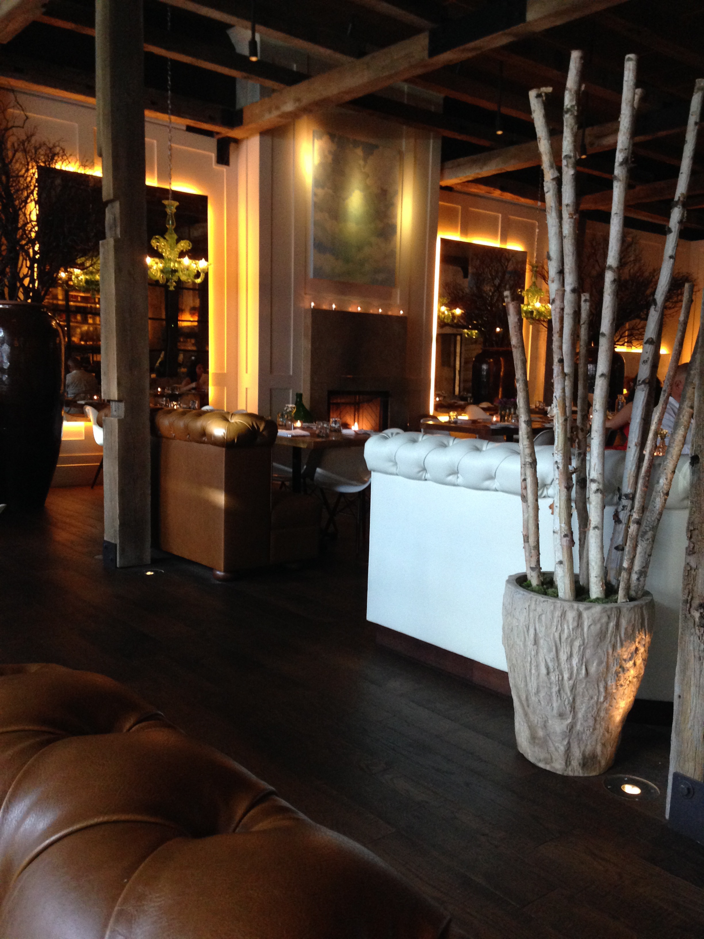 The contrast of Murano glass chandeliers, over-sized Persian carpets, ivory leather tufted banquettes, large and likely hand-carved wood tables paired with white Eiffel chairs created a vibe of European elegance meets rustic lodge with a nod to mid-century design. I liked the look and the food was delicious and approachable. This is what we ordered and shared.