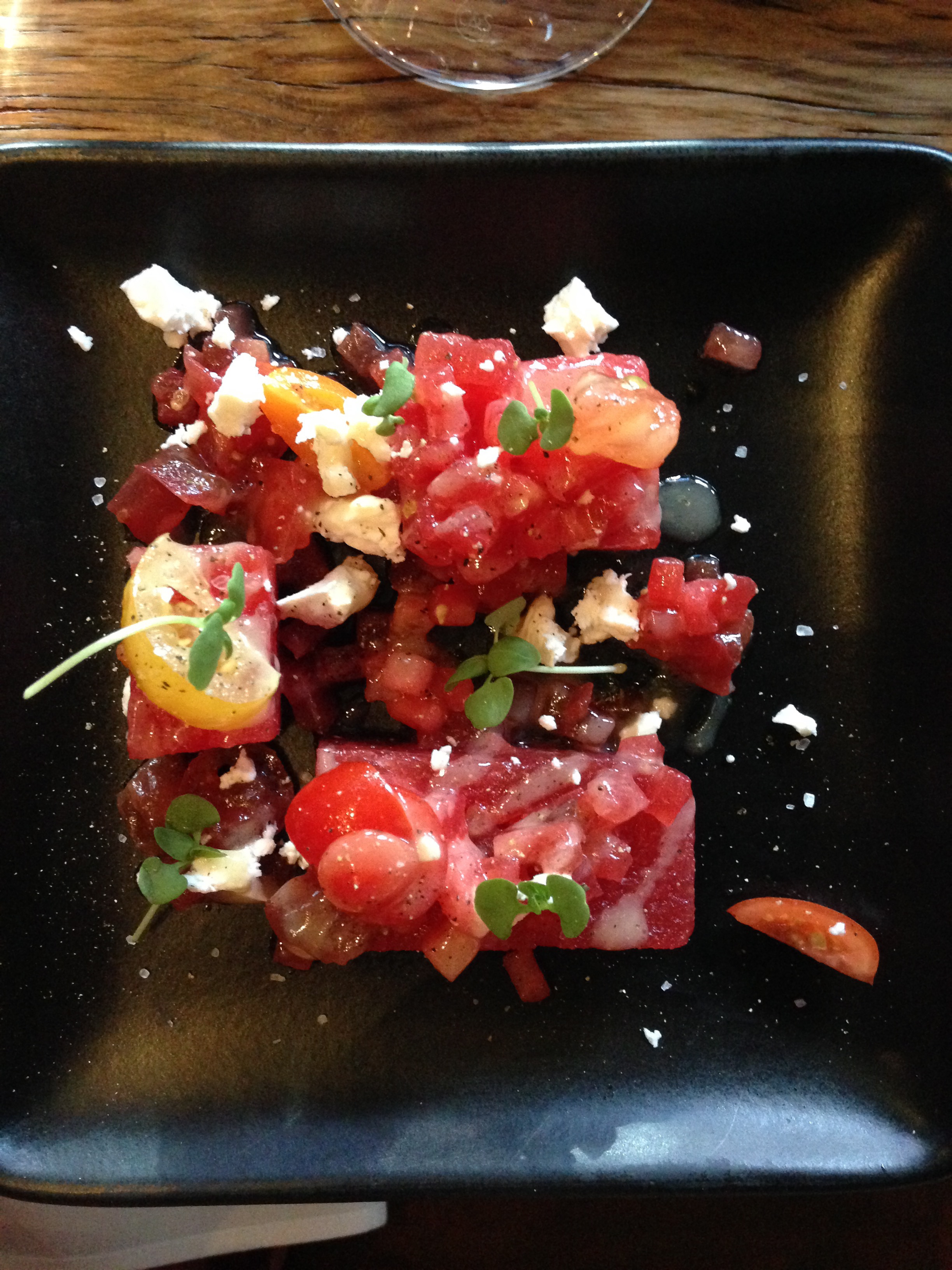 - Tomato and watermelon salad feta cheese, basil, golden balsamic vinaigrette (see above)