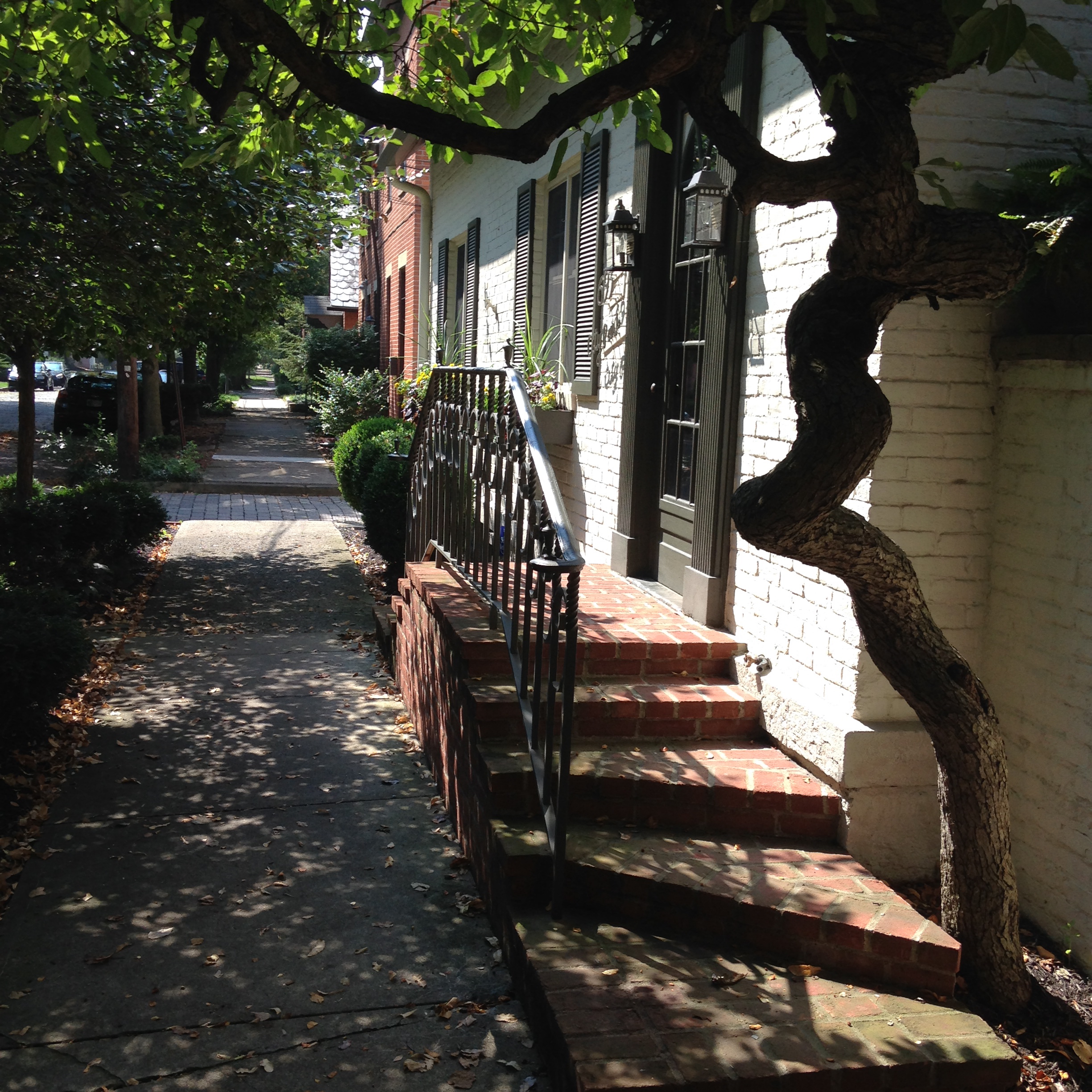 After The book loft we strolled around German village admiring the beautiful brick houses and the Fortress which was at one time the neighborhood school. It has been converted in to a home by some baron or business man of some sort who has tastefully preserved the original structure while adding what appears to be a beautifully landscaped “yard”. Apparently the foundation was dug up (don’t ask me how) to build an underground garage so all his hedge fund, celebrity and royal guests have a place to park because apparently parking in the neighborhood is a…rhymes with witch.