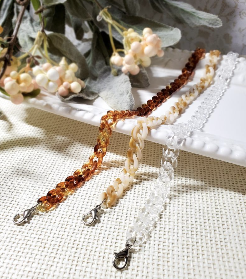 Now, don’t lose you gorgeous mask! Consider getting a mask chain. Yeas, a mask chain! It clips to your mask and hangs around your neck so you can keep it close when it’s not covering your beautiful face. Can double as a glasses chain for sunglasses or readers (if you’re old and blind like me). This accessory takes mask wearing to the next level.