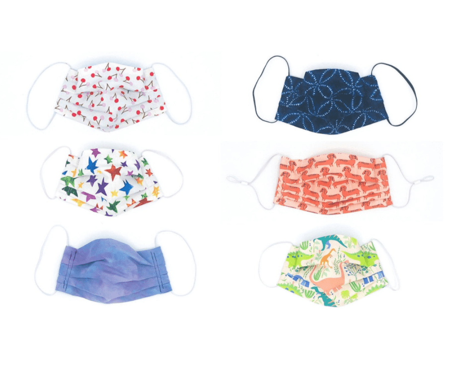 Below are customizable mask for kids on Etsy. Her toddler masks have been written up for their great fit and comfort level for the discerning 2-4 year old crowd. They are $17 each and are individually made with tons of prints to choose from!