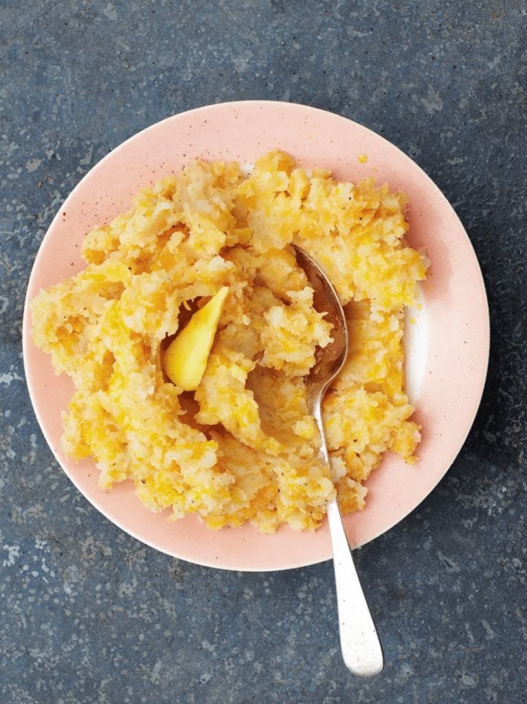 True confessions, I am not a big mashed potatoes and gravy person. Call me crazy but I pass on both. However, my mom used to make ‘neeps and tatties‘ on Thanksgiving, which is Scottish for turnips and potatoes. It was always one of my favorites. Basically, its potatoes and turnips mashed together with butter, a splash of cream, salt and pepper. The turnips give otherwise boring potatoes a really nice flavor. I don’t mash them into a whipped puree but rather leave a few chunky pieces for texture. Here’s Jamie Oliver’s recipe (pictured at the top) if you want instructions to follow. I will be kicked to the curb if I don’t make some type of gravy so I’ll have to pull something together. This will be my first year making it so wish me luck.