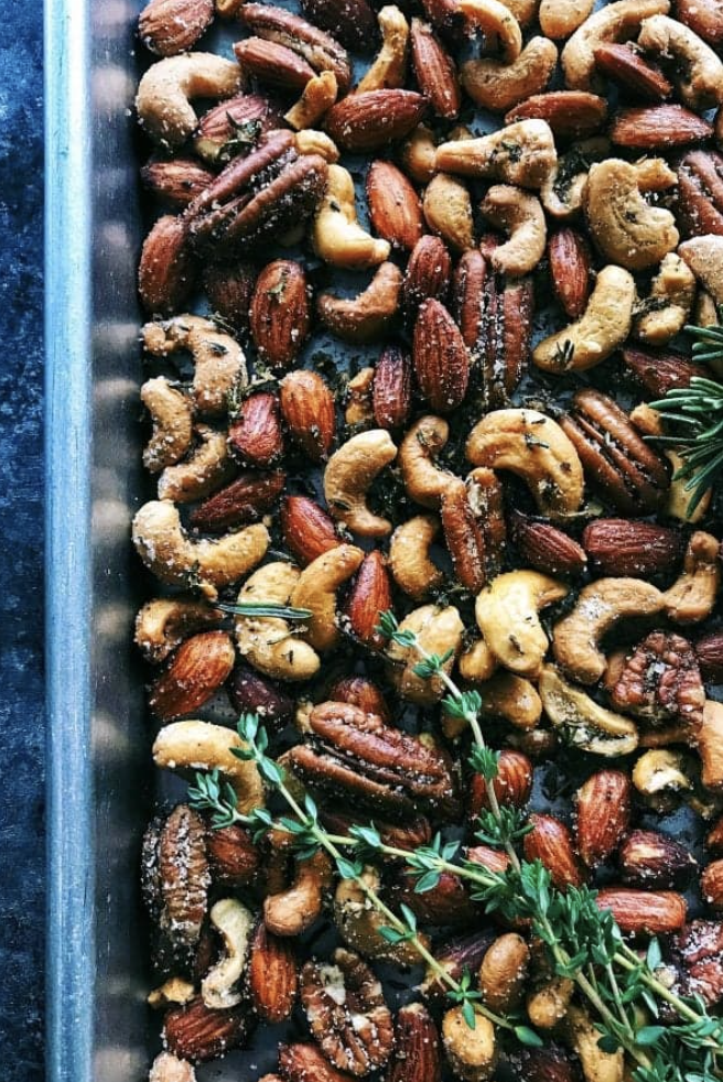 Both roasted nuts and bacon wrapped dates are super easy and delicious appetizers. Speaking of bacon, my mom always served our turkey with bacon wrapped lil’ smokie sausages surrounding it. I don’t think that’s a traditional American thing to do but we loved them! Bacon-wrapped dates would be a nice alternative it you wanted to decorate the turkey plate.