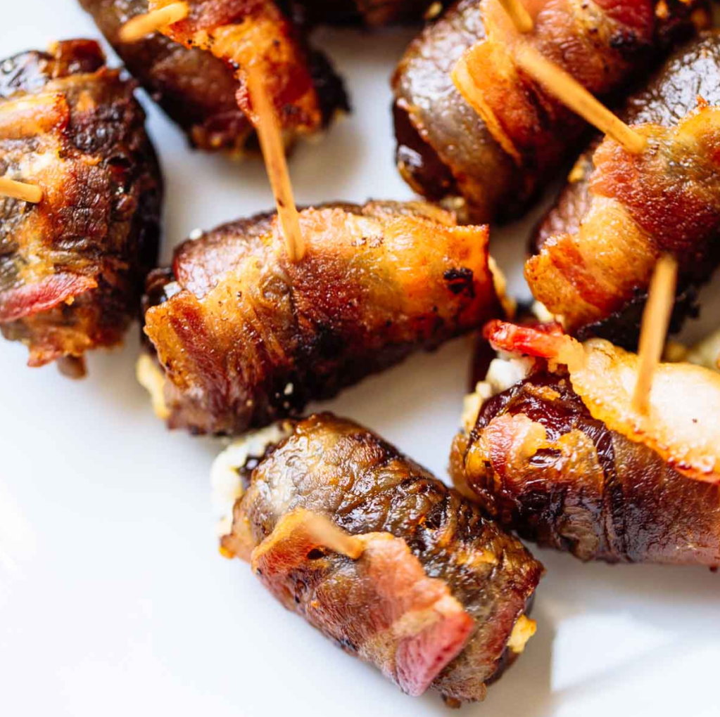Bacon wrapped dates with goat cheese from A Pinch Of Yum