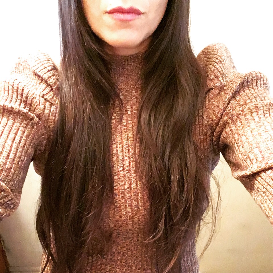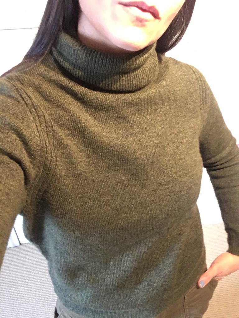 Let’s start with this Who What Wear mock neck. I thought the tight ribbed fabric might be unflattering but it actually fits well and looks pretty good. No major bulging. The puff sleeves are a nice on-trend detail but they aren’t so big that you look like a line-backer. I also like the heathered fabric which softens the look.
