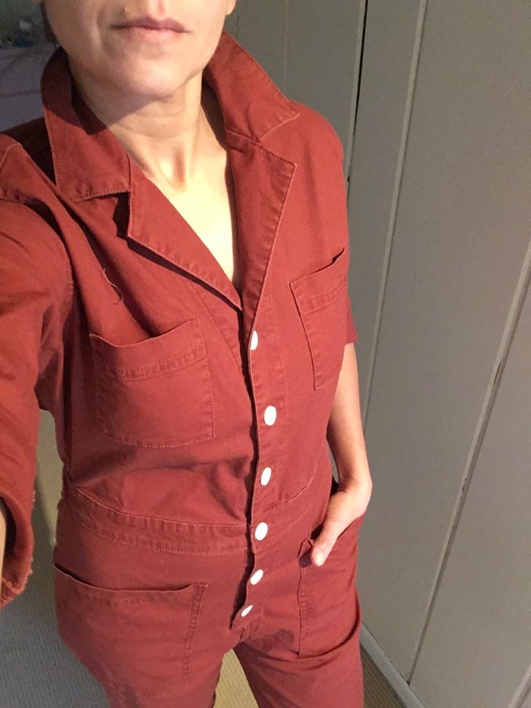 I’ve never really embraced the jumpsuit trend. I like the way they look on some people and I have tried to wear them but usually end up feeling like a gas station attendant. But then, this rusty little gem peered out at me from the clearance rack. Have you gathered by now that the Clearance rack is where it’s at? This was another online only item returned to store but you can still buy it online. I love the color and just a flip of the color make this feel chic. By Universal Thread. Many other colors available Including pink and blue denim. Get on it!