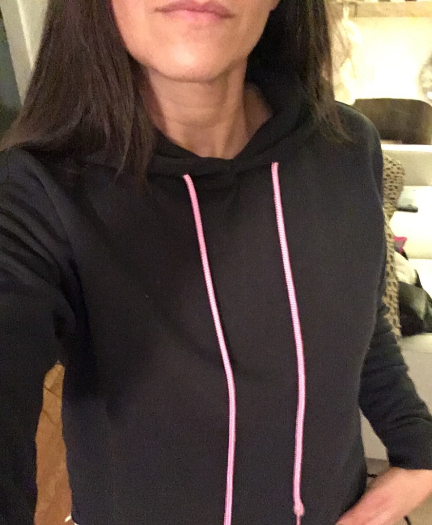 While we are on the topic of what I don’t typically wear, let’s talk about sweats. I gave in and bought a pair of cozy fleece sweatpants which no surprise, are from Target. To shop, click here. I figured if I’m spending so much time at home over the winter it’s probably OK. No one will see me. I don’t know what my hang up is about sweatpants because they are really comfortable. I guess I’ve just never considered them stylish. I also grabbed the Wild Fable cropped sweatshirt pictured above which I have worn many times around the house and while out running errands. I like the cropped length and the hot pink ties. It was an impulse grab but I have worn it a lot. For $18 I’ve already gotten my money’s worth. Thanks again Target.