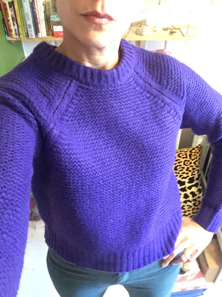 I’ve been looking for a vivid purple sweater and I couldn’t pass this one up. With a holiday promotion of 30% off sweaters it was only $14. Woohoo!