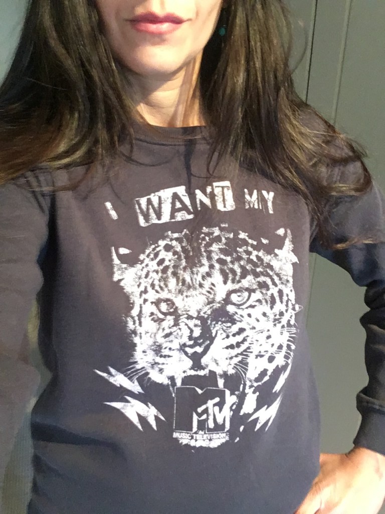 Being an adolescent and teen in the 80’s, this MTV graphic grabbed me. This sweatshirt is super soft inside. Though it may be an around the house kind of item, I still think it’s cute and it was only $8.99 I can handle that. Clearance rack strikes again.