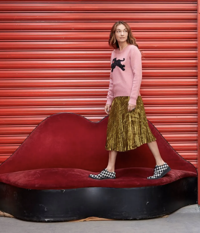 Yes, KELLY WEARSTLER is lauded for her interior design portfolio which is indeed awe-inspiring but she also marches to her own beat when it comes to fashion. She launched an apparel line several years back making her unique style accessible incase you can’t afford to hire her for your Malibu mansion remodel. She is a wizardress when it comes to bold combinations, strong shapes,proportion, color and pattern in both her Interior design and fashion choices.