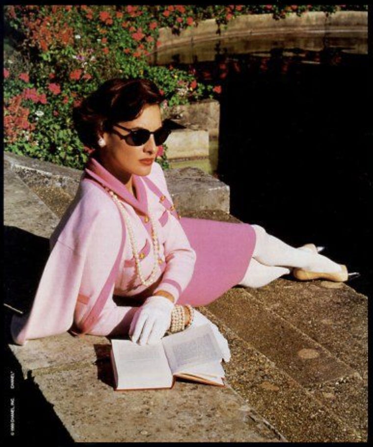 Somewhere in the piles of books and magazine I’ve collected over the years lies a plain black sketchbook with cut and pasted magazine pages including a plethora of Chanel ads from the 1980’s featuring the fabulous INES DE LA FRESSANGE. She is single-handedly responsible for making 8th grade Fiona set the goal of owning a Chanel suit one day. I just about died when I met her in the Paris airport in 1989 as I was heading home from the French exchange in High School. Not only did she look stunning in head to toe Chanel, she was super friendly and cheerfully took a photo with gushing 16 year old me. She personifies French style.