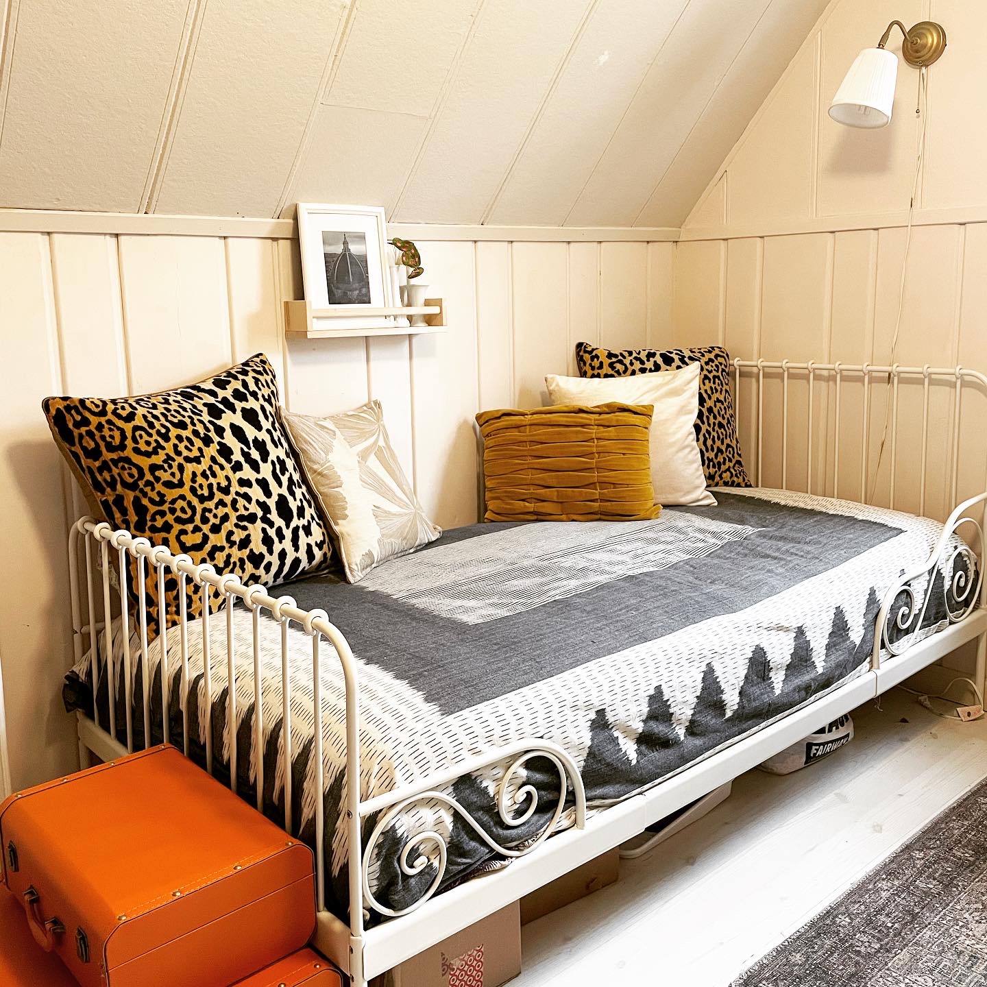 The antique table was a gift from my parents years ago and I’ve struggled with where to keep it since it’s really not very functional. I decided to use if for display and to keep some books, props and papers. The Ikat “blanket” is actually a large tablecloth I have had for years #repurpose. I linked similar item below in addition to other similar products from the room. Click images to shop. Side note, I wish I had cleaned out under the daybed before I took pictures but the truth is I store stuff underneath the bed. Maybe it’s time to swap out the Target boxes for some legit storage containers?!