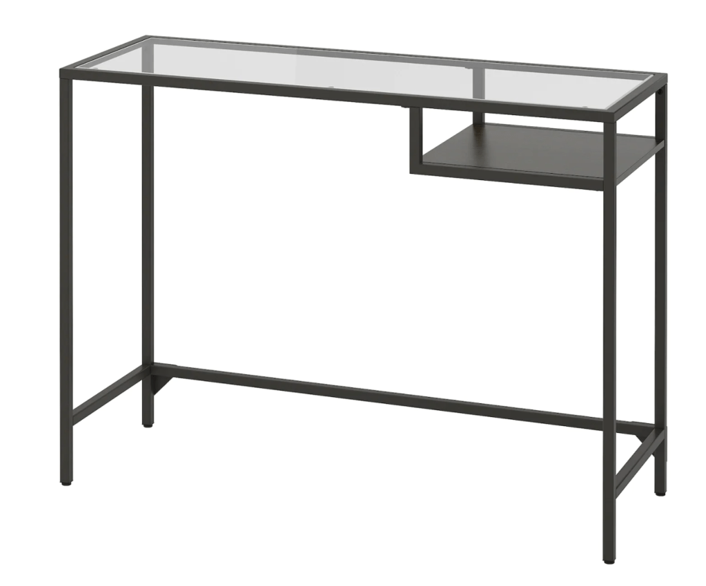 I didn’t want my office to feel to cluttered so I decided to just use a streamlined desk from Ikea (Vittsjo) which looks light in the space and is really just a surface area for my laptop and a place to make jewelry. I purchased in black and spray painted it gold.